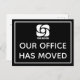 We have a new address moving postcards for a modern business or chic corporation looking to update their clients on a new location. Our office has moved. Simple and classy company change of address cards with your custom corporate logo in white on a black card. Customise the change of address on the back.