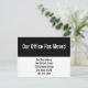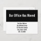 This black and white postcard has two fields. Together the black field says ' Our office has moved'. Use the white field to customise your postcard with your company's name, new address, and phone number.