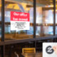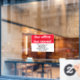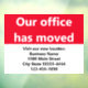 This bright red and white window cling says 'Our office has moved'. Use the white field to customise your window cling with your company's name, new address, and phone number.