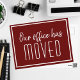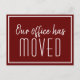 We have a new address moving postcards for a modern business or chic corporation looking to update their clients on a new location. Our office has moved. Classy, minimalist typography on red and white cards for your company. Customise the change of address on the back.