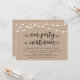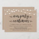 Beautiful Modern Rustic Farm String Lights, Black Script font on Brown Kraft Background, Wedding Elopement Announcement, Invitation card (Our Party Continues). This is perfect for your wedding reception and post-wedding celebration party. Add your details in matching font / lettering.