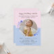 Our Shooting Star is Turning One Birthday Invitation. Celebrate your little one's first birthday with this charming, gender-neutral invitation. Featuring a pink and blue design, this minimalistic and modern invite is adorned with elegant script calligraphy. The circular baby photo in the centre is framed with whimsical shooting stars, creating a simple yet magical touch. Perfect for marking this special milestone in style. Customise with your own details.