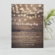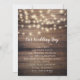 Rustic wood & string lights wedding day program.