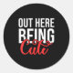 Out Here Being Cute Womens Floral Motivational Quo Classic Round Sticker