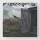 WOOD OUT HOUSE AND OLD RUSTED CAR CLOCK
