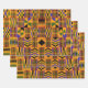 Set of three 19” x 29” semi-gloss wrapping paper sheets with an image of an orange, blue, black, purple and green African geometric design. See matching confetti and square sticker. See the entire This & That Wrapping Paper in the HOME section.