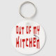 Out of my Kitchen saying for cooks with an attitude, moms with Momitude and those slaving over a hot stove everywhere. Fun food slogan in blood red scratchy letters with a meat cleaver in the 'N'
