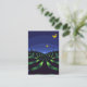 This fantastic abstract artist trading card features a surrealistic landscape of sky in waves of blue above green and black land reaching back to infinity, all in a luminous light. Three golden doves seem to be flying out of the infinite void.
