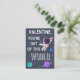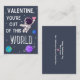 This cool Valentine's Day card features an astronaut in space with the words, "Valentine, you're out of this world". Stars, the Earth, and two other planets are in the background, and one pink heart is held in the astronaut's hand. This card is great for kids who need to bring Valentines into the classroom. The back includes customisable text where you can add your child's name. Check out the collection for four more space-themed classroom cards.