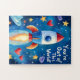 Transform playtime into an intergalactic adventure with this exciting kids’ jigsaw puzzle! Featuring a vibrant outer space design, the puzzle showcases a colourful rocket blasting off amidst glowing stars, whimsical planets, and floating hearts. The cheerful phrase "You’re Out of This World!" adds an extra touch of fun, making it a perfect activity for little explorers.