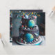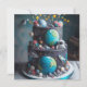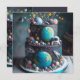 FUN SPACE THEMED CAKE ON THE FRONT IS GREAT FOR YOUR CHILD'S PARTY INVITATION.