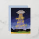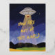 Painted UAP spaceship in a light beam and heart on a dark night sky background with the phrase "You are out of this world".