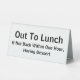 Keep your work space lighthearted with our Out To Lunch funny sign. This amusing sign promises that if you're not back within one hour, you're having dessert! Perfect for adding a touch of office humour to your cubicle or desktop.