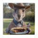 "Outback Delight: A Kangaroo Eats Aussie Meat Pie Ceramic Tile
