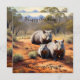 Outback Trio: Wombat Wanderers" captures the charm and resilience of three wombats basking in the sunlit beauty of the Australian outback. The acrylic painting showcases the earthy red tones of the rugged landscape, contrasted by the warm, soft fur of the wombats as they lounge or explore their surroundings. Native flora, scattered rocks, and hints of golden light frame the scene, celebrating the unique harmony of these iconic marsupials with their harsh yet stunning environment.