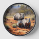 Outback Trio: Wombat Wanderers" captures the charm and resilience of three wombats basking in the sunlit beauty of the Australian outback. The acrylic painting showcases the earthy red tones of the rugged landscape, contrasted by the warm, soft fur of the wombats as they lounge or explore their surroundings. Native flora, scattered rocks, and hints of golden light frame the scene, celebrating the unique harmony of these iconic marsupials with their harsh yet stunning environment.
