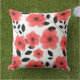 This outdoor accent throw pillow is shown with a lovely red flowers art print.