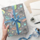 Wrap up outdoorsy gifts or gear for your favourite hiking or camping enthusiast with this patterned wrapping paper. It features pretty pastel coloured illustrations of hiking and camping gear like hiking boots, fanny packs, enamel mugs and binoculars along with butterfly and floral accents. The illustrations in lime green, aqua blue, peachy coral, pale yellow and charcoal grey are set against a grey background.
