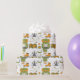 Fun gift wrap pattern features lots of adventure and outdoor elements including backpacks, hiking boots, tents, and maps