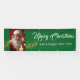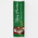 Select from indoor or outdoor, with or without grommets. Shown in green with white text "Merry Christmas" and "Happy New Year" in a fancy script and coordinating text with a photo of Santa.