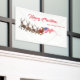 Select from indoor or outdoor, with or without grommets. Shown in white with red text "Merry Christmas" and "Happy New Year" in a fancy script