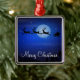 Outdoor Christmas ornaments with Santa on his sledges and reindeer and customisable text.