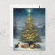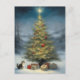 Outdoor Christmas Tree with Kitten and Presents Postcard