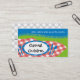 Outdoor picnic business cards or party gift tags; dinner plate with fork, knife, and spoon on a gingham or chequered blanket on the grass with sky above. Perfect message that life's a picnic when you do the cooking. For personal or private chefs, caterer or catering and other food, party or event business.