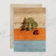 Invitation with camp theme features woods, pine trees, tent, and lake on woodgrain looking background. Reverse side is all set for your personalised custom details. From Paper Expressions.