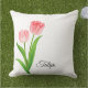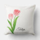 This outdoor throw pillow is shown a lovely pink tulips with water droplets print.