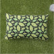 This outdoor accent throw pillow is shown with a lovely garden green and yellow leaves pattern print design.