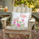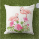 This outdoor accent throw pillow is shown with a tropical flamingos print.