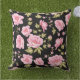 This outdoor accent throw pillow is shown with a lovely pink flowers print.