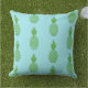 This outdoor throw pillow is shown in a pretty aqua colour with a green pineapples print.