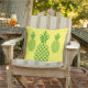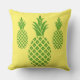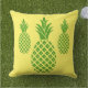 This outdoor throw pillow is shown in a sunny yellow colour with a green pineapple print.