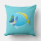 This outdoor throw pillow is shown in a aqua colour with a pretty tropical fish print.
