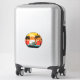 The stick looks amazing. Unfortunately, it would not stick on our suitcase as it was textured. When we found a non-textured (smooth) suitcase, the sticker stuck and looks great. The printing looked awesome.