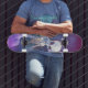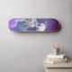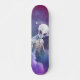 The skateboard seems to be taken out of another world. Its design shows an alien with large, glittering eyes within the dense atmosphere of its distant planet. From the hazy bottom of purple and blue gases, his curious gaze was stuck in us, as if he were trying to decipher our existence. It's more than just a skateboard; it's a portal to the unknown, gliding down on the asphalt just as fluently as the stars fill the void.