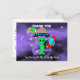Such a cute alien in outer space themed thank you card, with UFO Space ship, stars and planets, ideal for small boys or girls and so easy to customise with your details.
