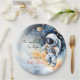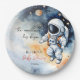 Outer space astronaut baby shower editable template plates, cute watercolor baby in a space suit flying in space personalised tableware template party plates