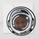 Unique, fun, modern and bold birthday astronaut outer space adventure unique personalised photo birthday party invitation design. A bold illustration of an astronaut helmet is displaced on the front of the round space invitation. We've created this unique one of a kind personalised astronaut space helmet that you place your birthday recipients photo in to create the appearance that they're wearing a astronaut's space helmet!