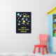 Birthday poster with a cute and colourful pattern with all kinds of outer space themed elements. Images include astronauts floating around in their white space suits. Stars and planets and cool little rocket ships, spaceships, and satellites. Fun and crazy design.