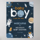 Houston, we have a baby boy! Countdown to blast off! Greet your family and friends to your outer space themed baby shower with this poster. This design features planets, stars, rocket ships, astronauts, galaxies, satellites and more! Digital download option available.