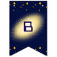 Decorate your party with a cosmic touch using this outer space birthday bunting banner! Featuring a dark blue starry background, glowing galaxy centre, colourful planets, Earth, a shooting meteorite, and an astronaut riding a rocket ship, this banner brings the universe right to your celebration. Perfect for hanging above tables, dessert stations, or party entrances, it coordinates beautifully with our matching invitations, thank you cards, plates, napkins, posters, balloons, favour boxes, stickers, coasters, and more for a fully themed space birthday party.