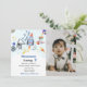 Outer space birthday theme, travel theme baby boy invitation