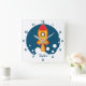 An out of this world nursery or kid's bedroom clock. This cute outer space design features a space rocket ship coming out of the clouds. Room for personalised name, so this would make a fabulous baby nursery or grandchild gift. Dark blue background can be changed to any colour.
