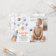 Watercolor planets with a rocket blasting off in front of gentle clouds. Blast Off! to celebrate your special occasion with this adorable design.