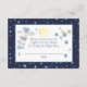 Outer space diaper raffles with blue stars on midnight blue background. Each card has a spaceman, spacecraft and pale yellow moon on white background. Enclose in the envelope with matching invitations.