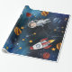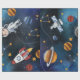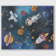 Cute space boy in astronaut gear floating in outer space. A wrapping paper a future astro physicist would love