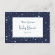 Outer space How Big Is Mummy's Belly baby shower game with blue stars on midnight blue background. Each card has a spaceman, spacecraft and pale yellow moon on white background. Enclose in the envelope with matching invitations.
